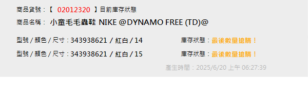 小童毛毛蟲鞋 NIKE @DYNAMO FREE (TD)@