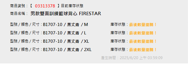男款雙面訓練籃球背心 FIRESTAR