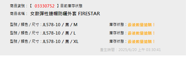 女款彈性連帽防曬外套 FIRESTAR