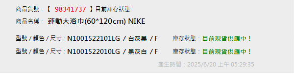 運動大浴巾(60*120cm) NIKE