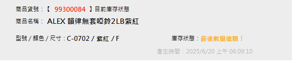 ALEX 韻律無套啞鈴2LB紫紅