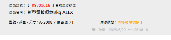新型電鍍啞鈴8kg ALEX