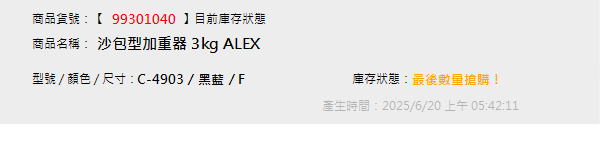沙包型加重器 3kg ALEX