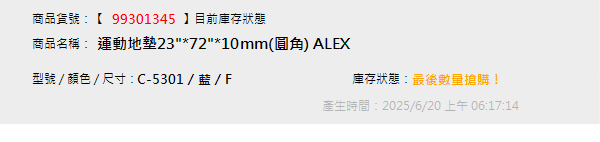運動地墊23"*72"*10mm(圓角) ALEX
