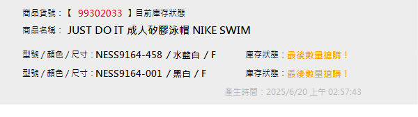 JUST DO IT 成人矽膠泳帽 NIKE SWIM