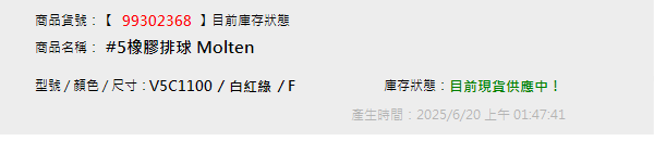 #5橡膠排球 Molten